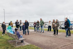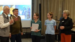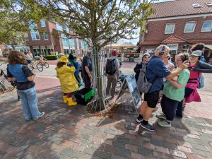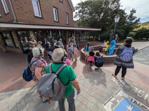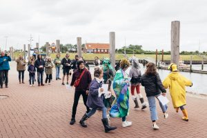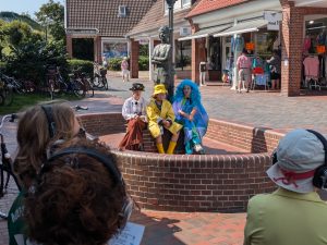 Die Laudatio für Langeoog hielt Oliver Kamlage, Geschäftsführer des Niedersächsischen Städte- und Gemeindebundes und Beiratsmitglied der Stiftung, und entpuppte sich dabei auch als guter Langeoog-Kenner. Er lobte die Initiative der jungen Langeooger, die den Besucherinnen und Besuchern der Insel Informationen über das Watt, die Natur und das Leben auf der Insel in früheren Zeiten vermittle. So schafften sie Bewusstsein dafür, wie wichtig es ist, den Naturraum Wattenmeer zu schützen. Mit der Auszeichnung würdigt die Tassilo Tröscher-Stiftung das Engagement der jungen Theatergruppe und ihrer Unterstützerinnen und Unterstützer, das Stück in Eigenregie über mittlerweile zwei Jahre und weit über die ursprünglich geplante Zahl von Aufführungen hinaus immer wieder zu zeigen, um möglichst viele Menschen zu erreichen. So ist es auch auf der Urkunde zu lesen, die Kamlage neben einer Tafel der Stiftung und einem Scheck über das Preisgeld in Höhe von 1.000 Euro überreichte.